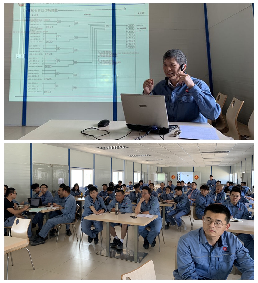 培訓(xùn)由工程部副總工程師王成林主講,從準(zhǔn)備工作,邏輯圖目錄編排(按輸出和功能)和PC站軟按鈕清單,氣流輸送的通常操作步驟,料倉的選擇、確認(rèn)及切換,氣動(dòng)換向閥控制,輸送風(fēng)機(jī)的選擇、確認(rèn)、控制及風(fēng)機(jī)出口氣動(dòng)蝶閥控制等,并以風(fēng)送A1線為例,做了具體邏輯的解讀。參訓(xùn)人員紛紛表示,受益良多,此次課程的邏輯學(xué)習(xí)也適用其他系統(tǒng),王成林副總工的工匠精神同樣值得我們學(xué)習(xí)。